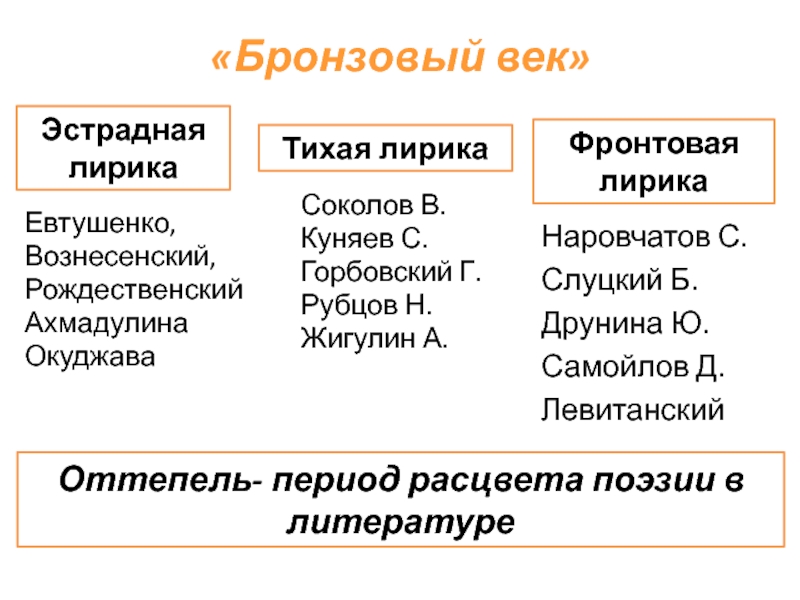 Оттепель- период расцвета поэзии в литературе