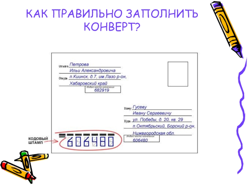 Слайд 12КАК ПРАВИЛЬНО ЗАПОЛНИТЬ КОНВЕРТ?