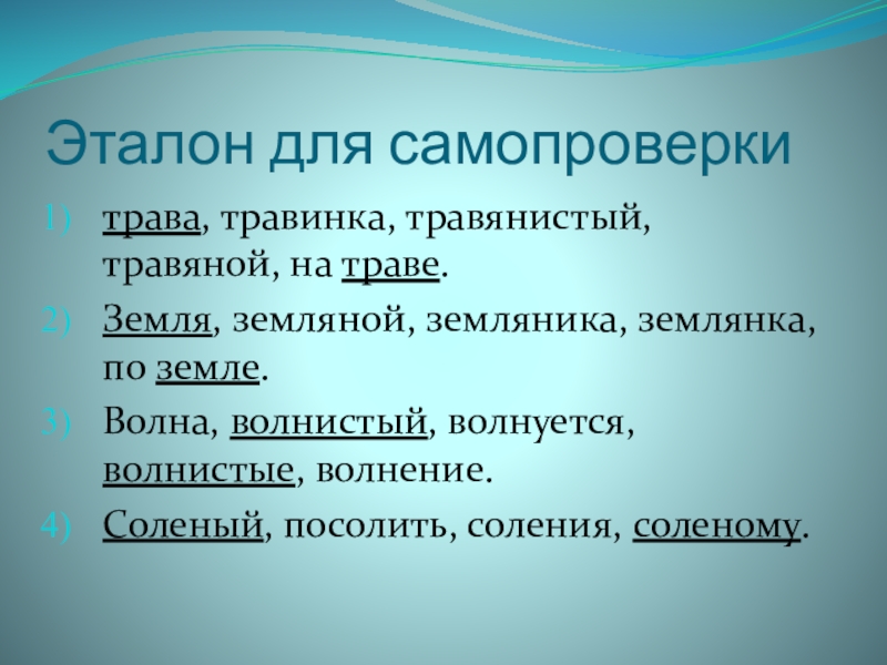 В..лна, в..лнистый, в..лнуется, в..лнистые, в..лнение.
