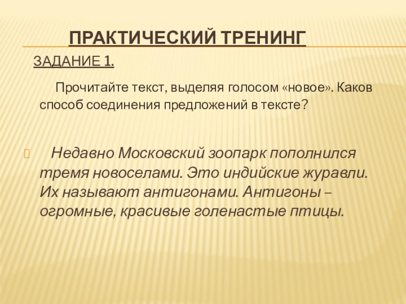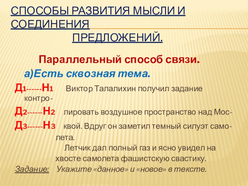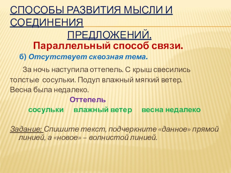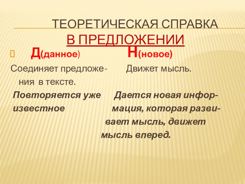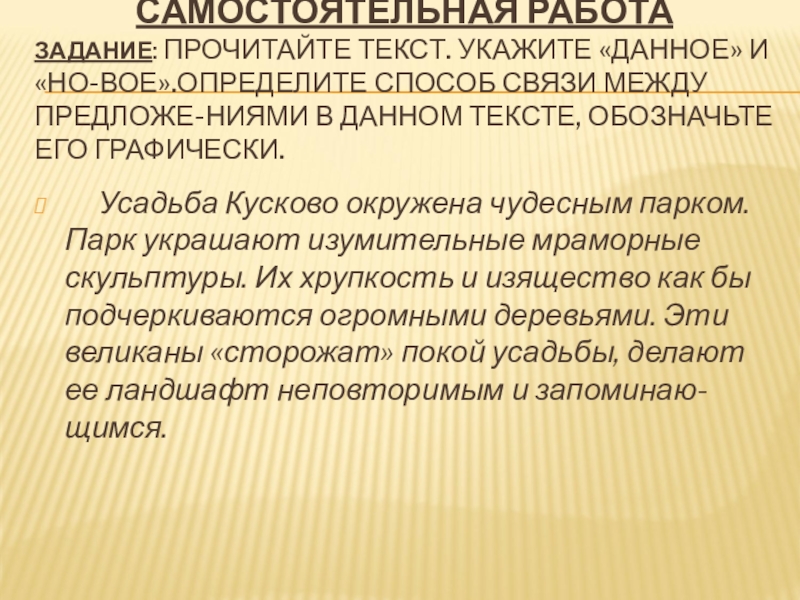 Задание: Спишите текст, подчеркните «данное» прямой линией, а «новое» – волнистой линией.