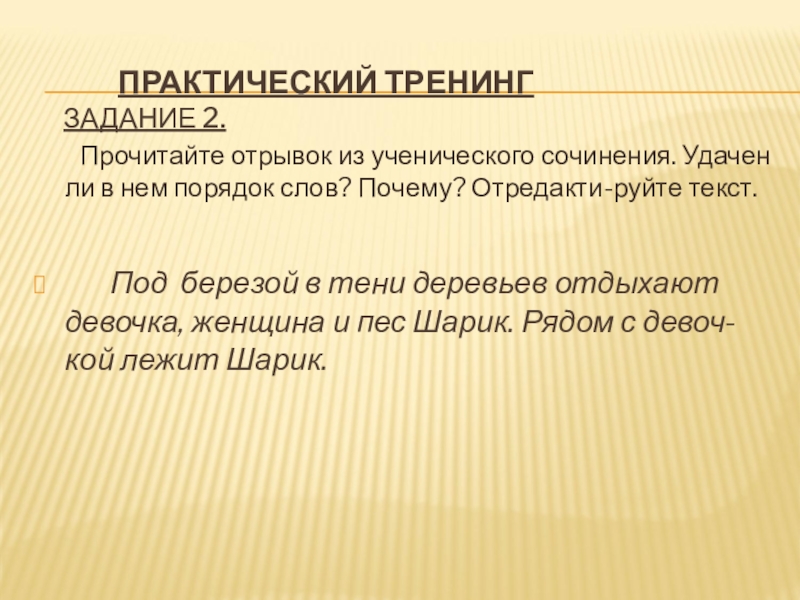 Прочитайте отрывок из ученического сочинения. Удачен ли в нем порядок слов? Почему? Отредакти-руйте текст.
