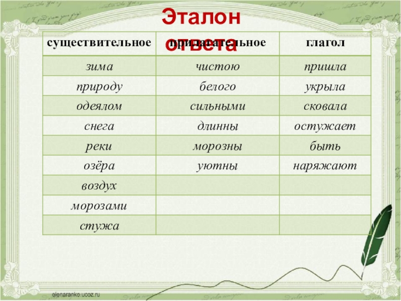 3. Задание «Части речи». Заполнить таблицу по тексту «Декабрь». – от 0 до 2 баллов.