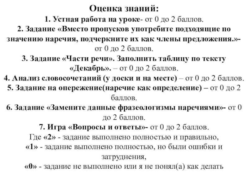 5. Задание на опережение(наречие как определение) – от 0 до 2 баллов.