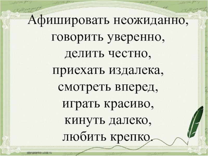 Слайд 9Афишировать неожиданно, говорить уверенно,