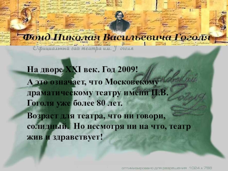 Возраст для театра, что ни говори, солидный. Но несмотря ни на что, театр жив и здравствует!