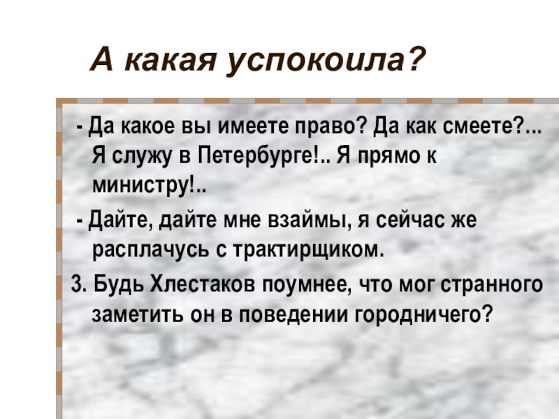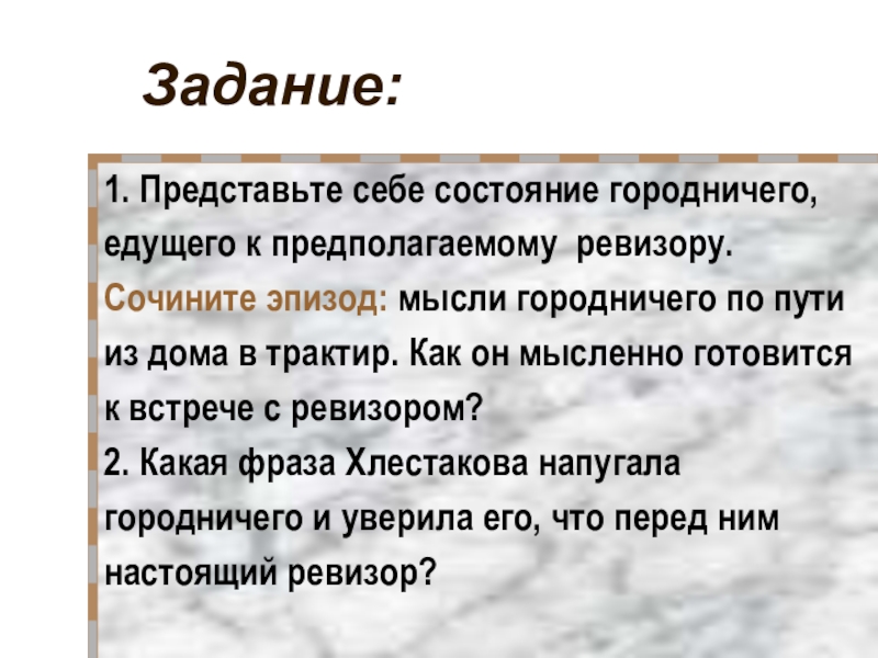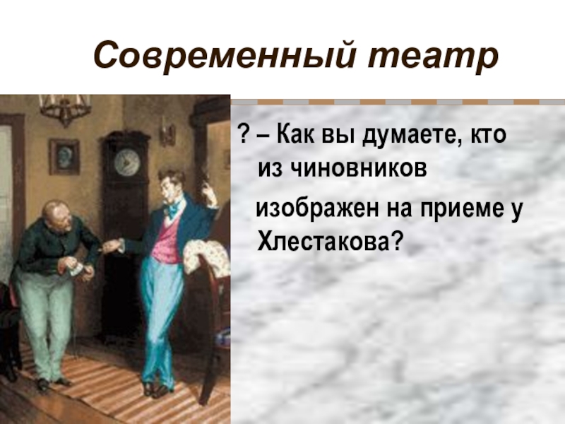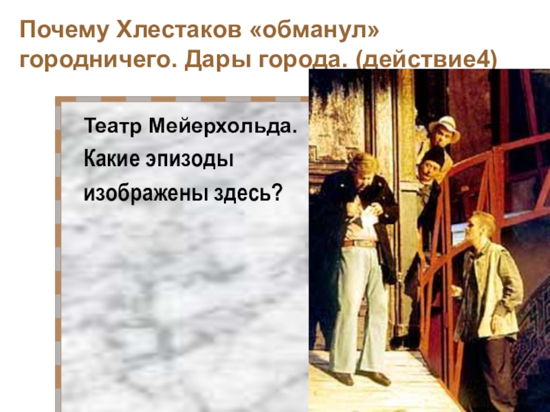 Слайд 21Почему Хлестаков «обманул» городничего. Дары города. (действие4)