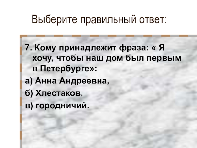 7. Кому принадлежит фраза: « Я хочу, чтобы наш