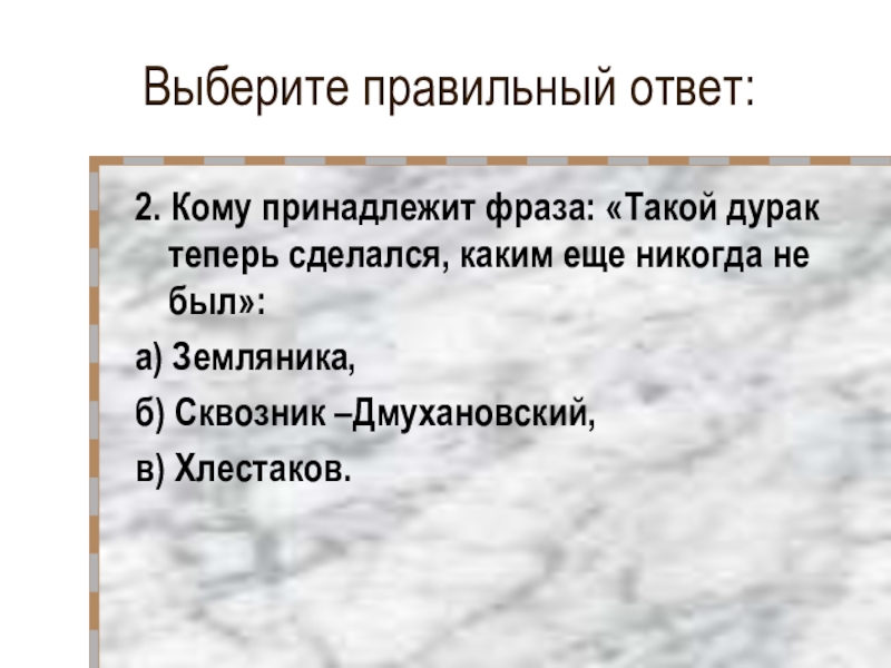 2. Кому принадлежит фраза: «Такой дурак теперь сделался, каким