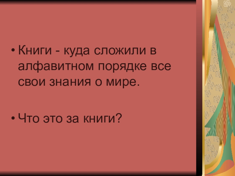 Это сайт презентаций, где можно хранить и обмениваться своими презентациями, докладами, проектами, шаблонами в формате PowerPoint с другими пользователями. Мы помогаем школьникам, студентам, учителям, преподавателям хранить и обмениваться учебными материалами.