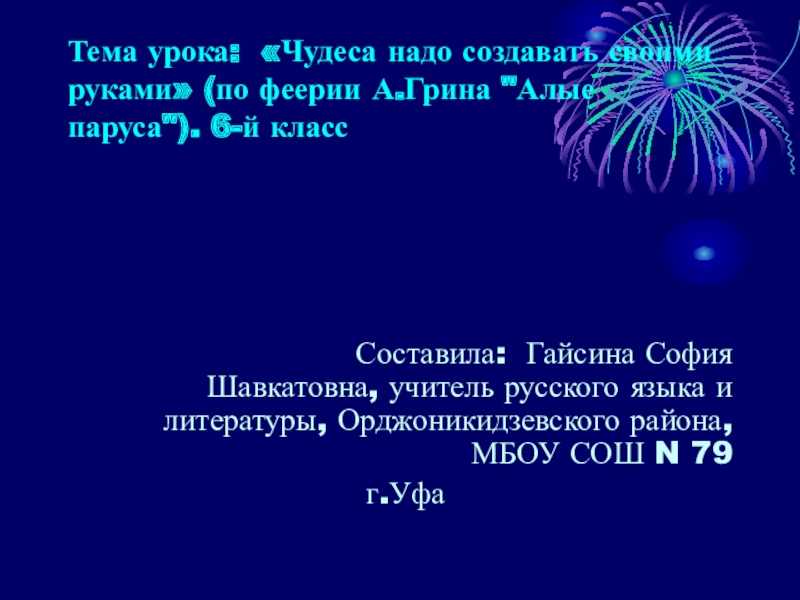 Составила: Гайсина София Шавкатовна, учитель русского языка и литературы, Орджоникидзевского района, МБОУ СОШ N 79