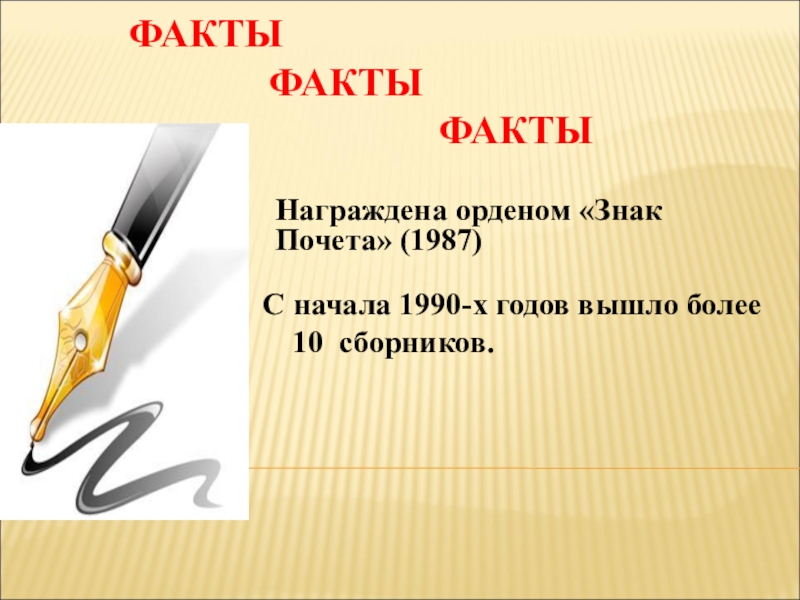2000г на Каннском кинофестивале получила награду«За вклад в литературу и кино»