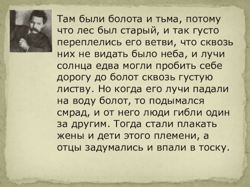 Слайд 7Там были болота и тьма, потому что лес был старый, и