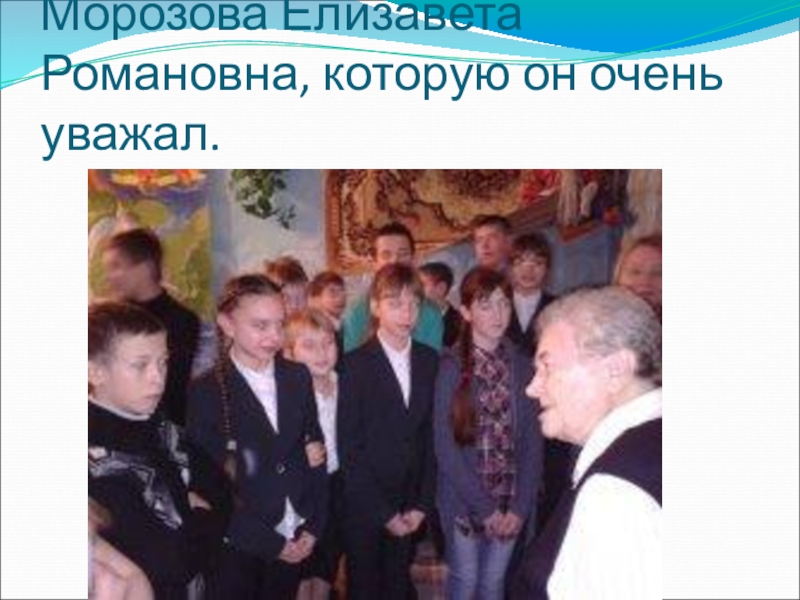 Слайд 7 Морозова Елизавета Романовна, которую он очень уважал.