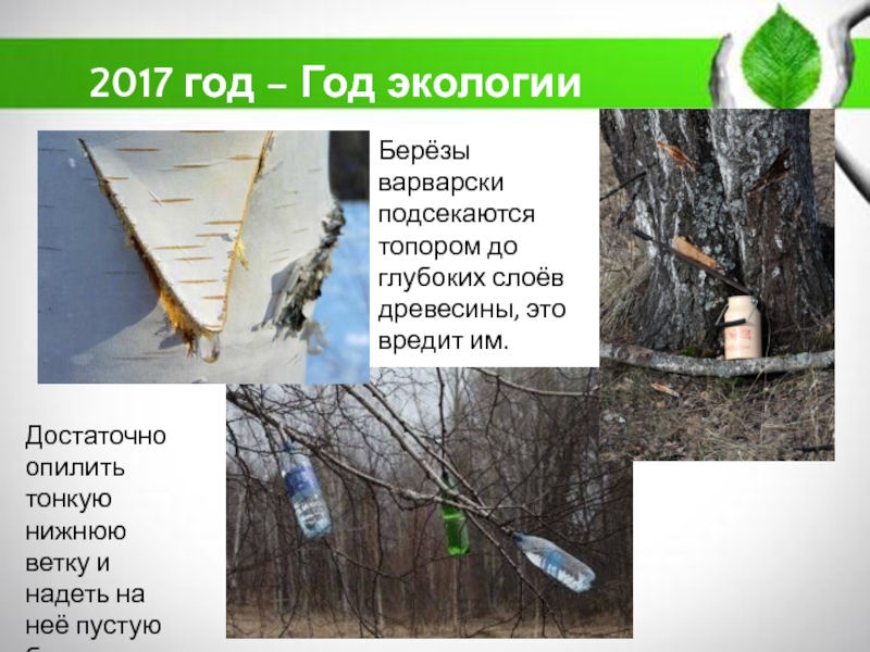 Берёзы варварски подсекаются топором до глубоких слоёв древесины, это вредит им.