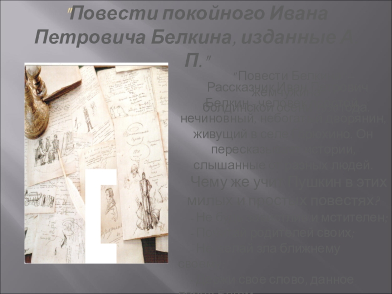 Чему же учит Пушкин в этих милых и простых повестях?