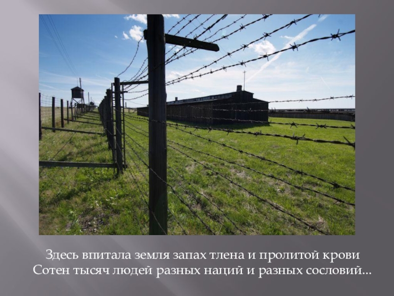 Здесь впитала земля запах тлена и пролитой кровиСотен тысяч людей разных наций и разных сословий...