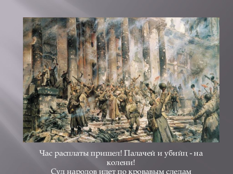 Слайд 20Час расплаты пришел! Палачей и убийц - на колени!