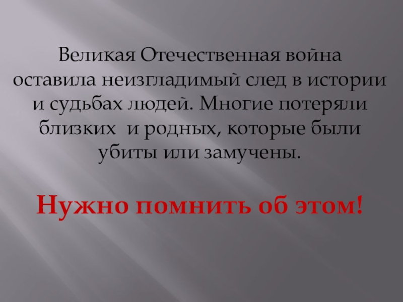 Многие потеряли близких и родных, которые были убиты или замучены.