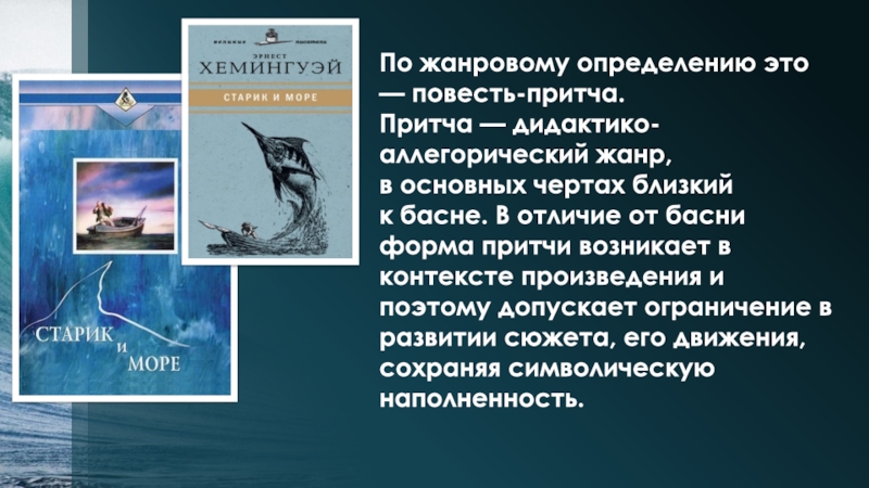 Слайд 13По жанровому определению это — повесть-притча.