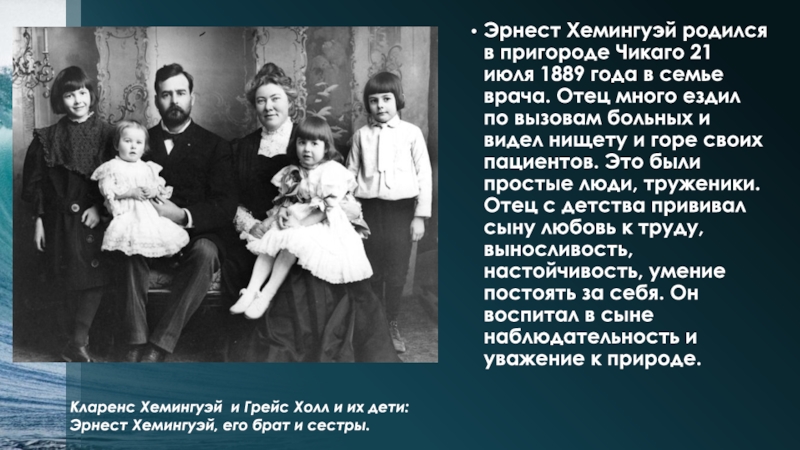 Кларенс Хемингуэй и Грейс Холл и их дети: