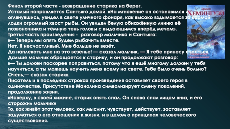 Слайд 22Финал второй части - возвращение старика на берег.