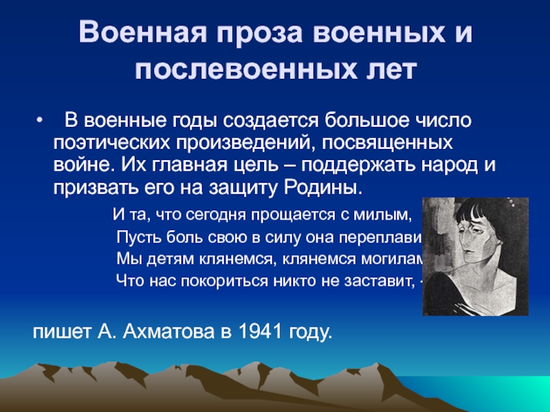 Слайд 4Военная проза военных и послевоенных лет