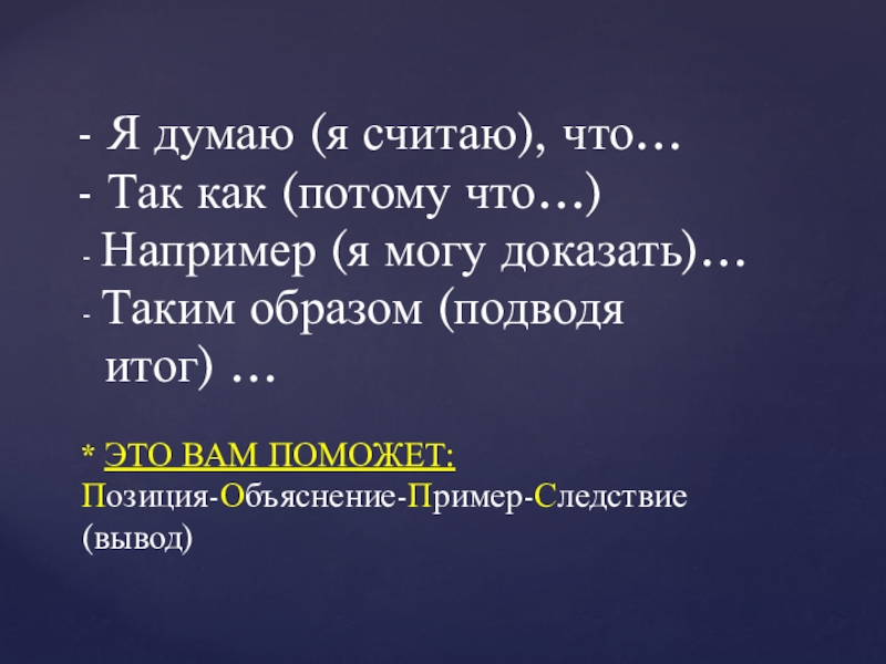 Позиция-Объяснение-Пример-Следствие (вывод)