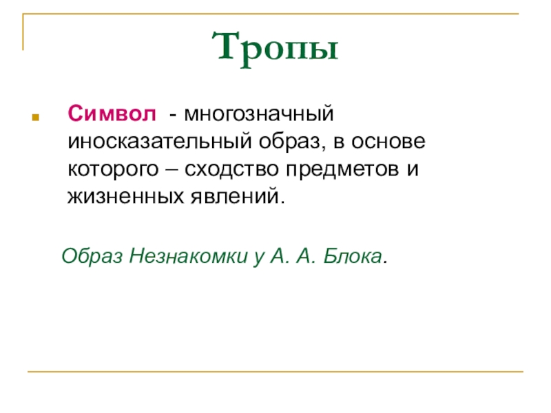 Символ - многозначный иносказательный образ, в основе которого – сходство предметов
