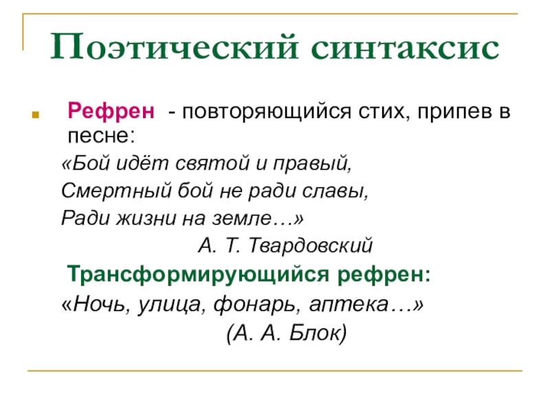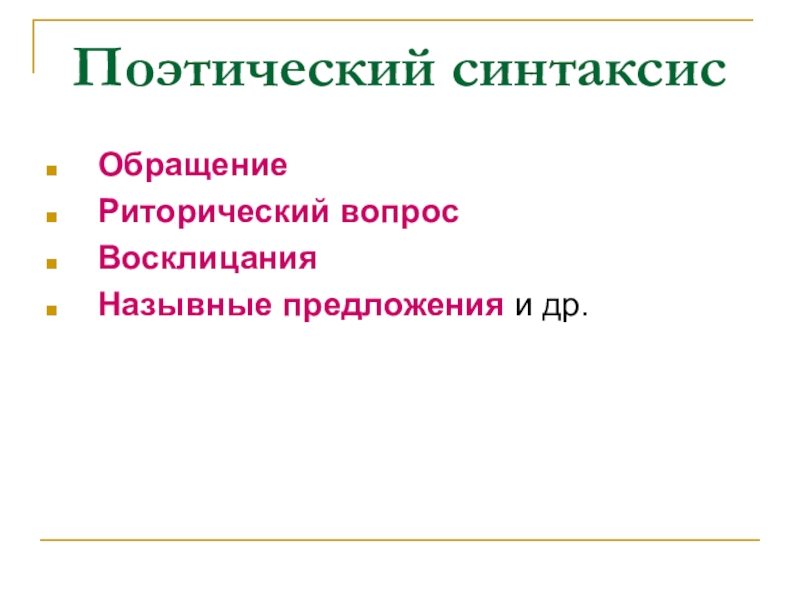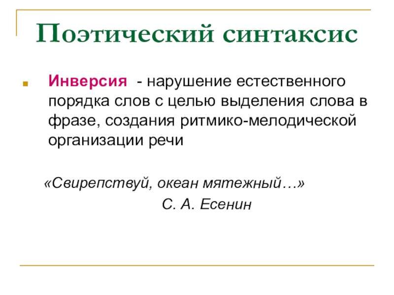 Слайд 18Поэтический синтаксис