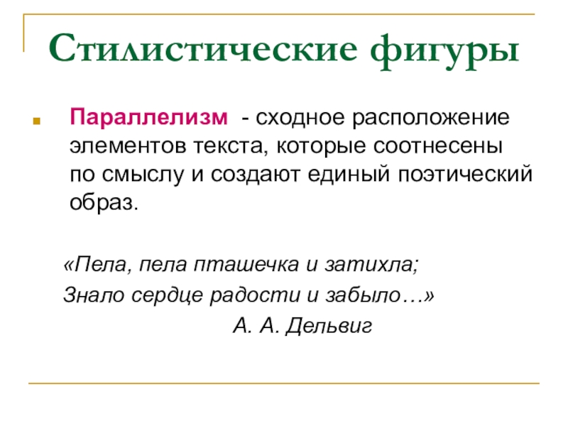 Параллелизм - сходное расположение элементов текста, которые соотнесены по смыслу