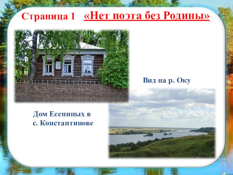 Страница 1«Нет поэта без Родины»Дом Есениных в с. Константинове Вид на р. Оку