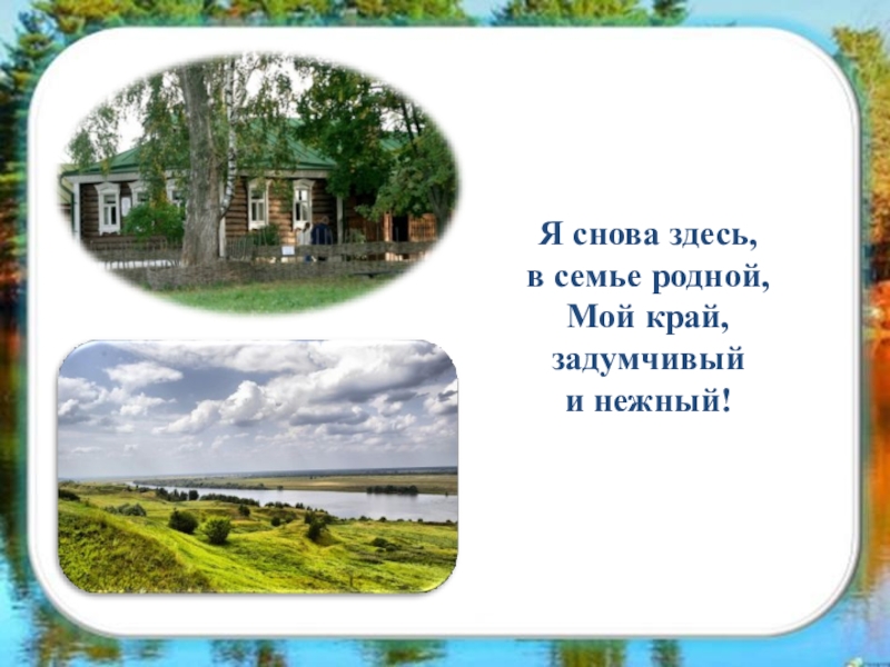 Я снова здесь, в семье родной, Мой край, задумчивый и нежный!