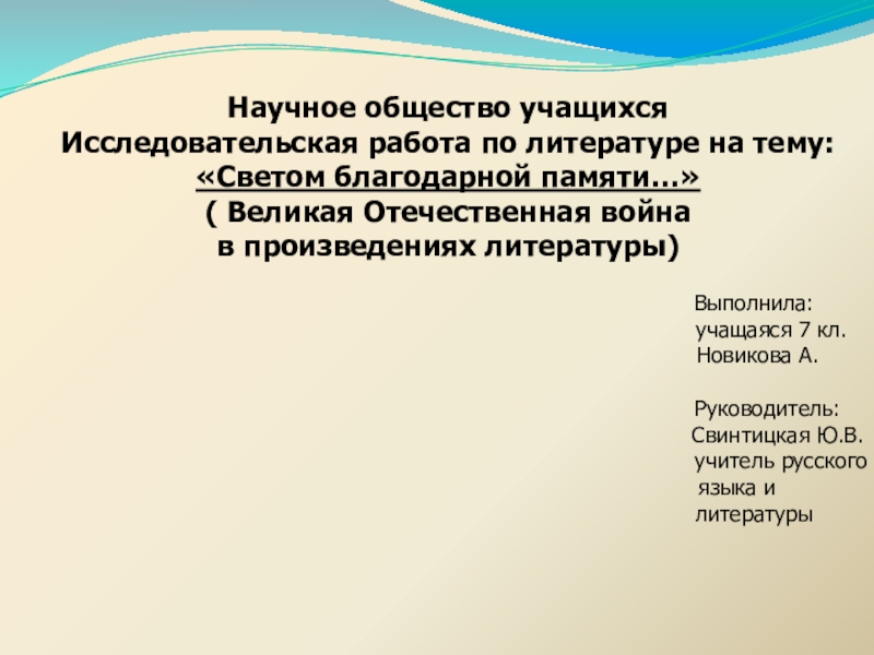 3)через анализ литературных произведений доказать, что Вов - это величайшая трагедия народа, которая не должна быть забыта.