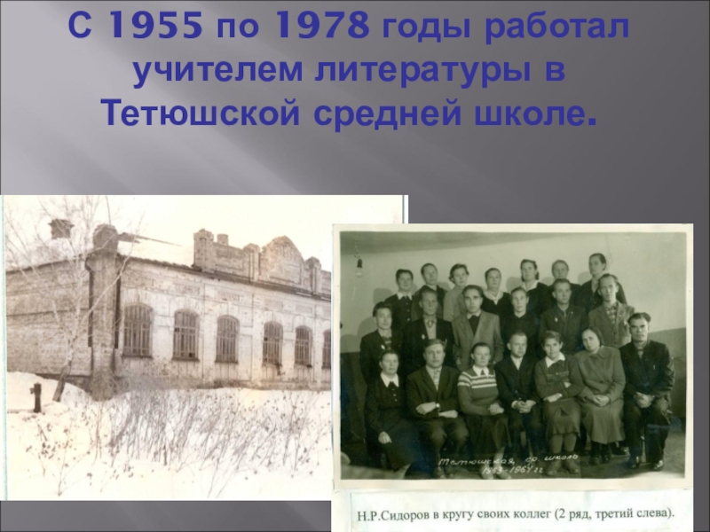 Слайд 9С 1955 по 1978 годы работал учителем литературы в Тетюшской средней