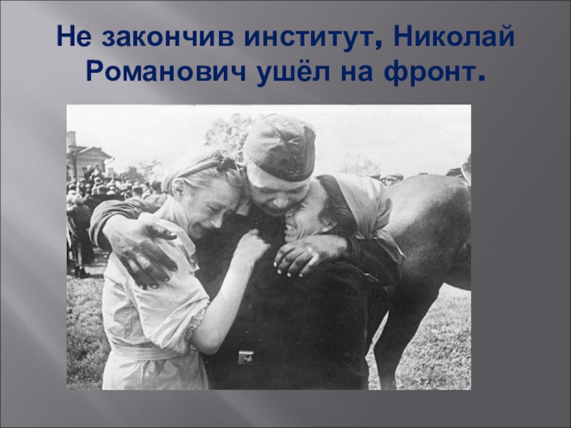 Слайд 6Не закончив институт, Николай Романович ушёл на фронт.