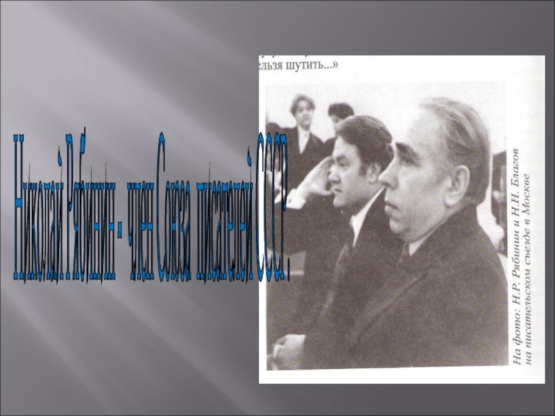 Слайд 13Николай Рябинин - член Союза писателей СССР.