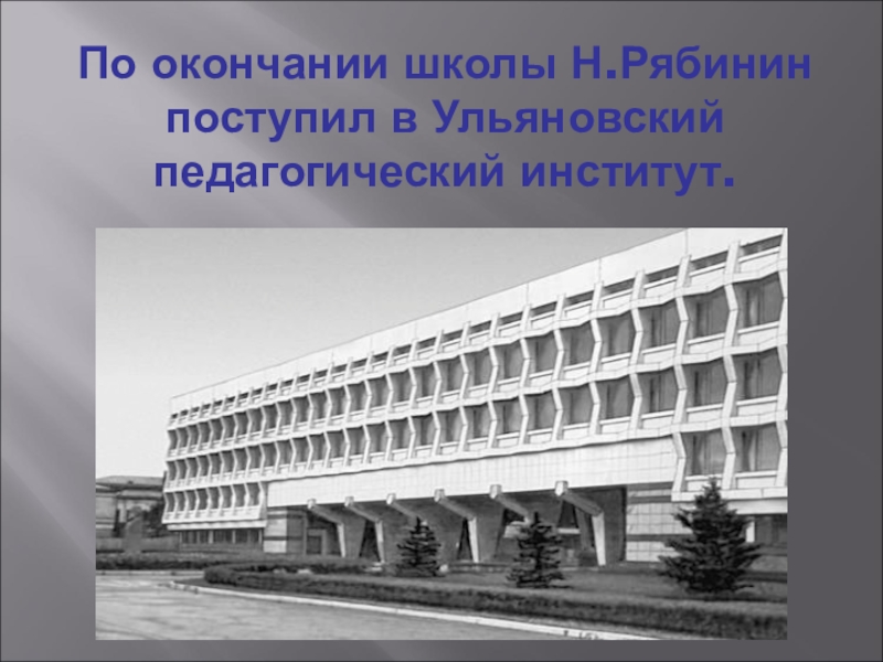 Слайд 5По окончании школы Н.Рябинин поступил в Ульяновский педагогический институт.