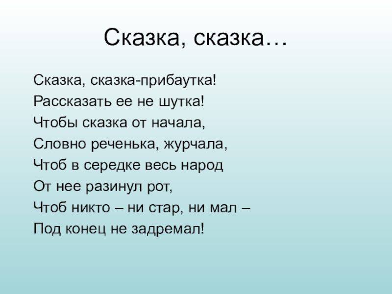 Слайд 3Сказка родилась с человеком, и покуда жив человек, будет жива и