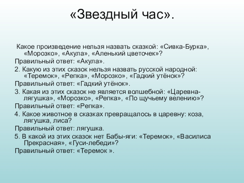 3. Какая из этих сказок не является волшебной: «Царевна-лягушка», «Морозко», «Репка», «По щучьему велению»?