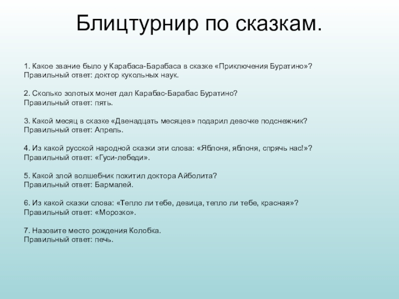 1. Какое звание было у Карабаса-Барабаса в сказке «Приключения