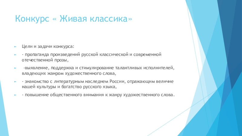 -выявление, поддержка и стимулирование талантливых исполнителей, владеющих жанром художественного слова,