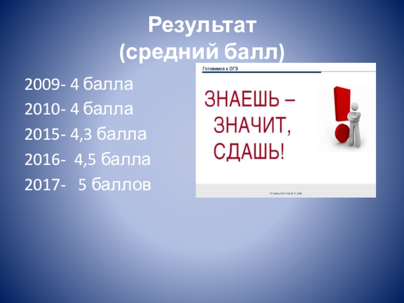рамках государственной итоговой аттестации в 2017 г. предмет «Русский язык» в 9 классе в качестве обязательного экзамена сдавали 10356 участников. Максимальный балл за выполнение экзаменацион-ной работы получили 373 участника (3,6% от общего количества участников). Средняя отметка по предмету «Русский язык» составляет 4,13.