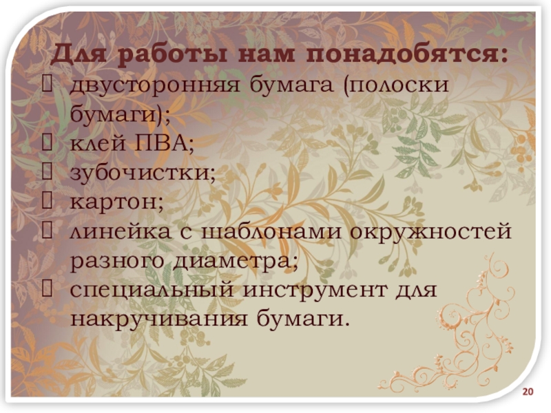 Слайд 20Для работы нам понадобятся: