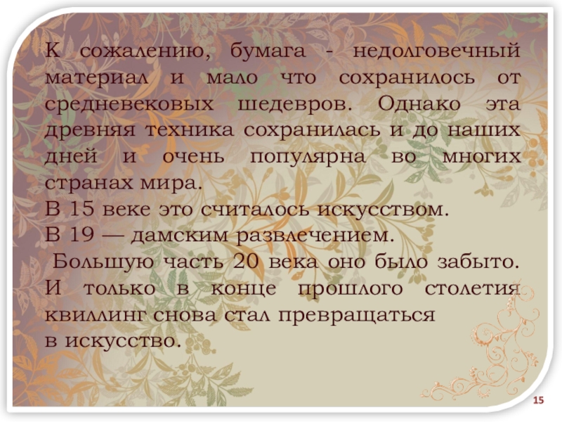 Большую часть 20 века оно было забыто. И только в конце прошлого столетия квиллинг снова стал превращаться