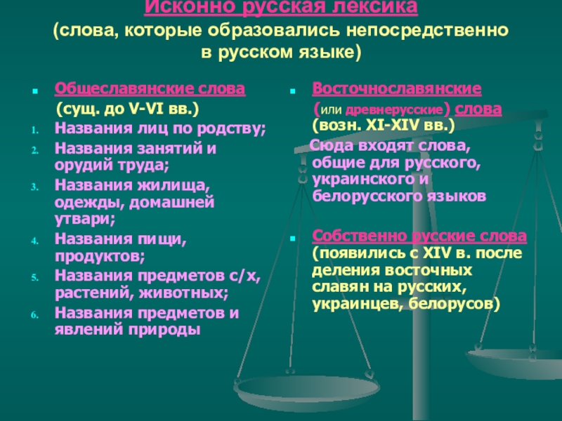 Исконно русские слова (общеславянские, восточнославянские, собственно русские)