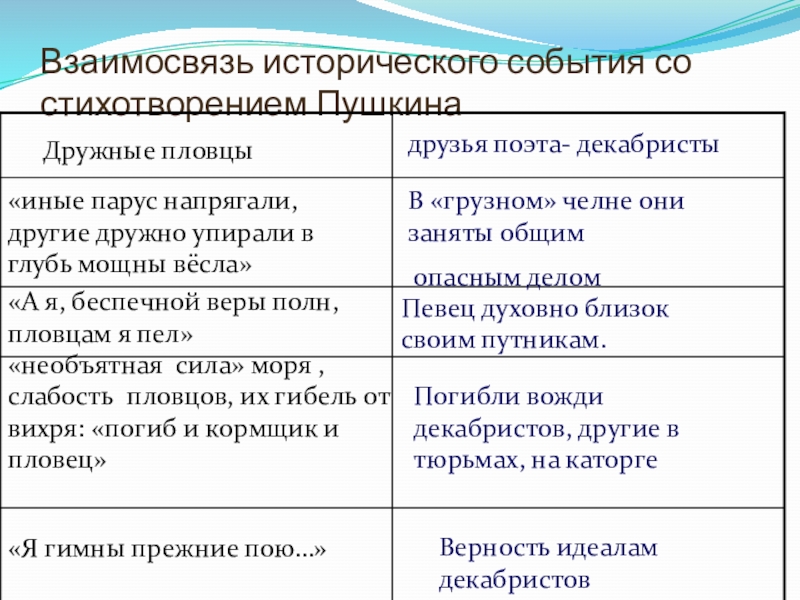 «необъятная сила» моря , слабость пловцов, их гибель от вихря: «погиб и кормщик и пловец»
