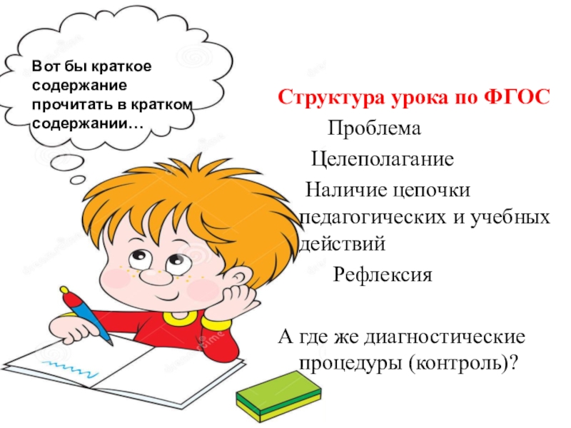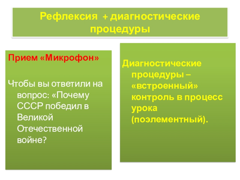 Диагностические процедуры – «встроенный» контроль в процесс урока (поэлементный).