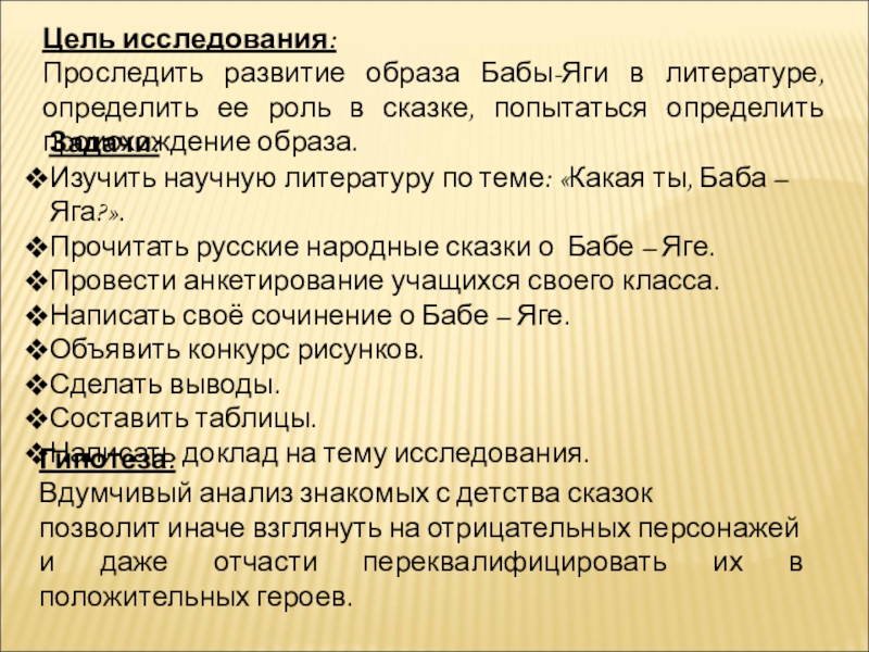 Изучить научную литературу по теме: «Какая ты, Баба – Яга?».
