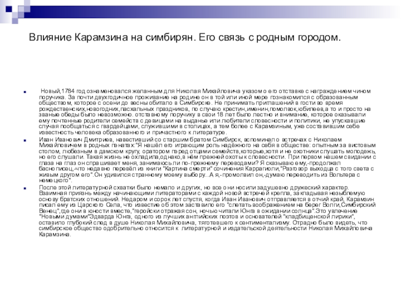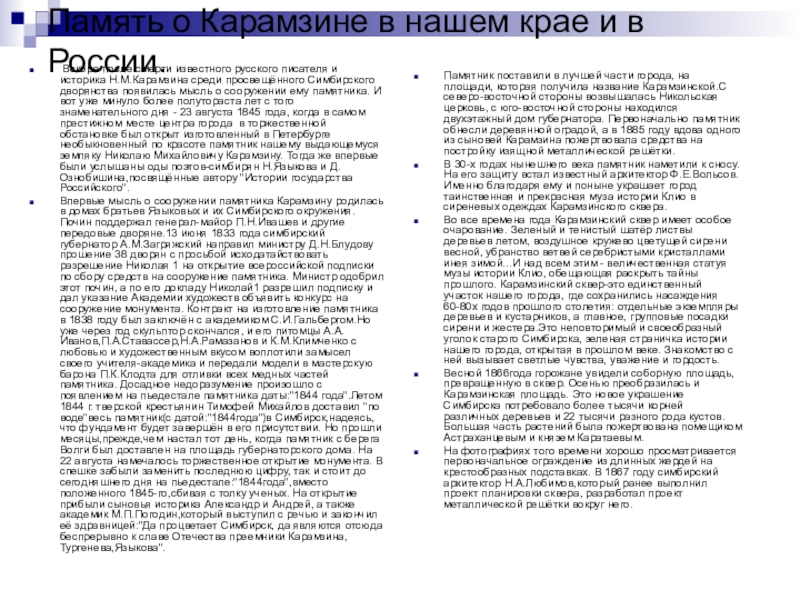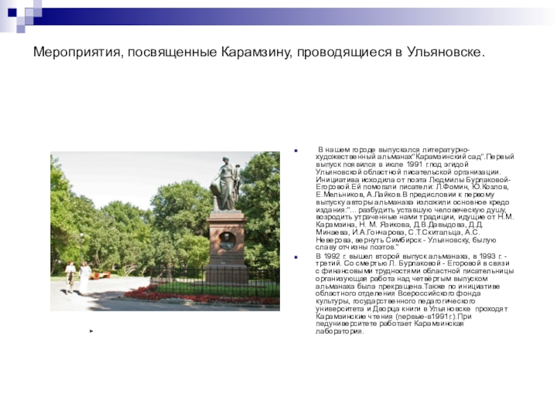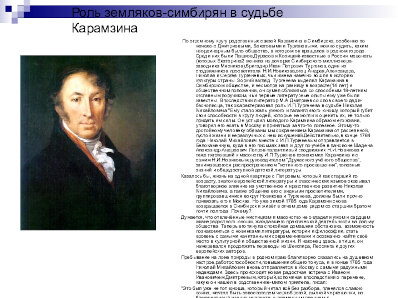 С городом Симбирском связано имя историка и литератора Николая Михайловича Карамзина(1766-1826гг.).