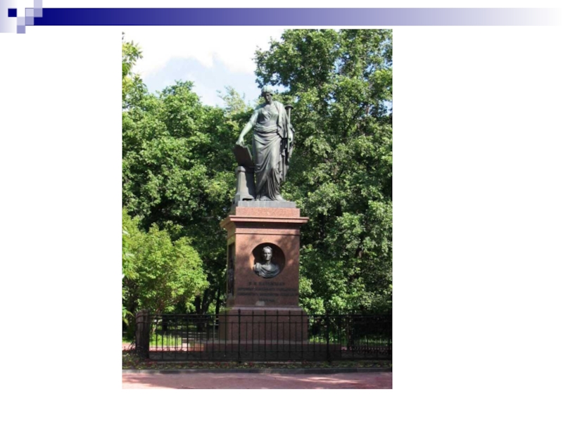 В 30-х годах нынешнего века памятник наметили к сносу. На его защиту встал известный архитектор Ф.Е.Вольсов.Именно благодаря ему и поныне украшает город таинственная и прекрасная муза истории Клио в сиреневых одеждах Карамзинского сквера.